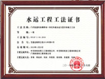 The company also has a number of special certification technologies such as Level I and Level II construction methods in the water transport industry, more than 20 national patents independently developed by the Ministry of Transport of the People's Republic of China. In 2019, the company won the "high-tech enterprise certificate"