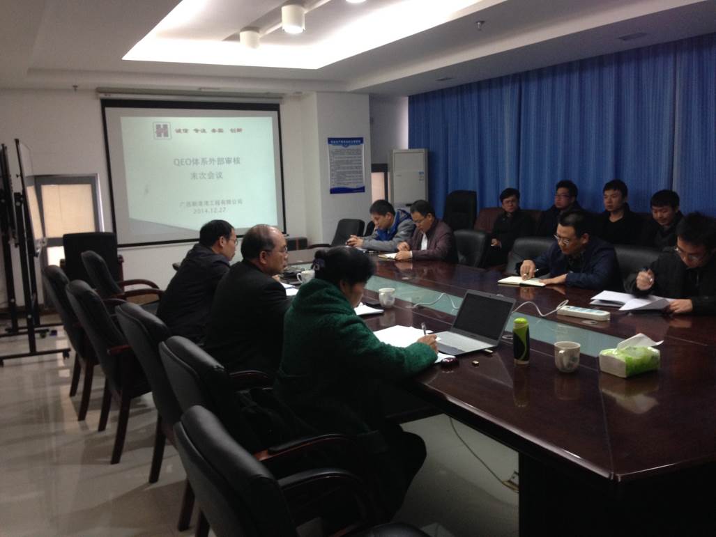 2014年12月25-26日,方圓標志認證集團審核專家組一行蒞臨我司進行為期2天的ISO9001(質(zhì)量管理體系)、GB/T50430(工程建設(shè)施工企業(yè)質(zhì)量管理規(guī)范)、ISO14001(環(huán)境管理體系)、OHSAS18001(職業(yè)健康安全管理體系)4體系第二次監(jiān)督認證審核。