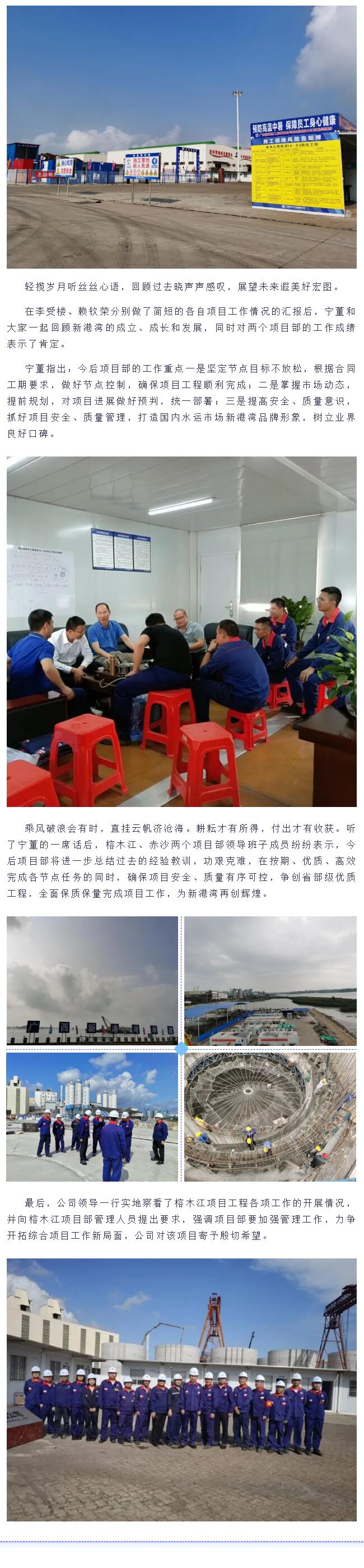 下午一時許,在榕木江項(xiàng)目領(lǐng)導(dǎo)李受樓、赤沙項(xiàng)目領(lǐng)導(dǎo)賴欽榮等人的陪同下,公司創(chuàng)始人寧旭展先生、公司總經(jīng)理肖建國、副總經(jīng)理袁明一行到防城港榕木江項(xiàng)目工地視察工作。